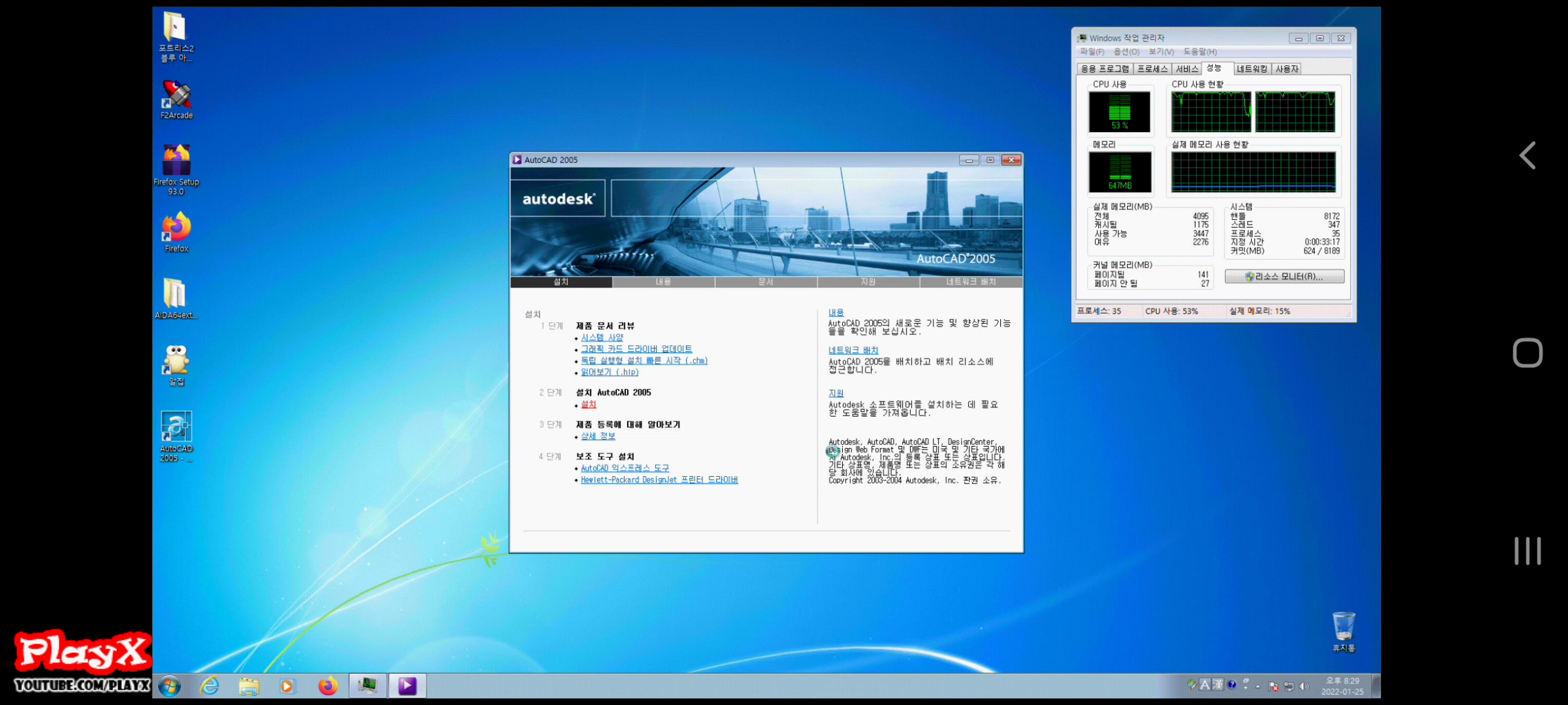 오토캐드 2005 한글판을 설치해봤습니다.